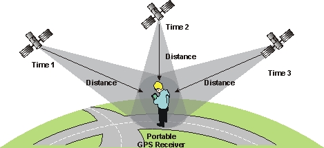 Sateliti konstantno šalju signale, koje može “uloviti” svako ko ima GPS uređaj. Međutim, ovi sateliti ne određuju samo dimenzije prostora, nego mjere i vrijeme: signal satelita sadrži podatke o poziciji svakog satelita, ali i o vremenu kada su podaci odaslani. Put tj. distanca se računa tako što se vrijeme množi sa brzinom svjetlosti (= 299 792 458 m/s).